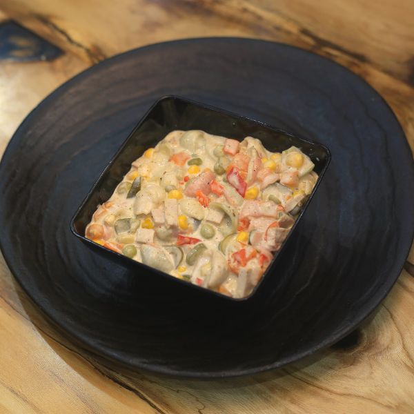 ۲۰۰ گرم برگر دستساز + ۲ ورق پنیر گودا + چوریتسو + گوجه + خیارشور + کاهو + سس مخصوص + پیاز کاراملی